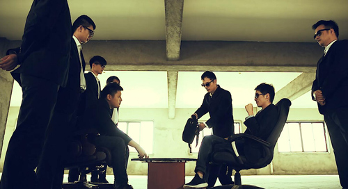 昏暗的廠房,兩班人馬對(duì)峙